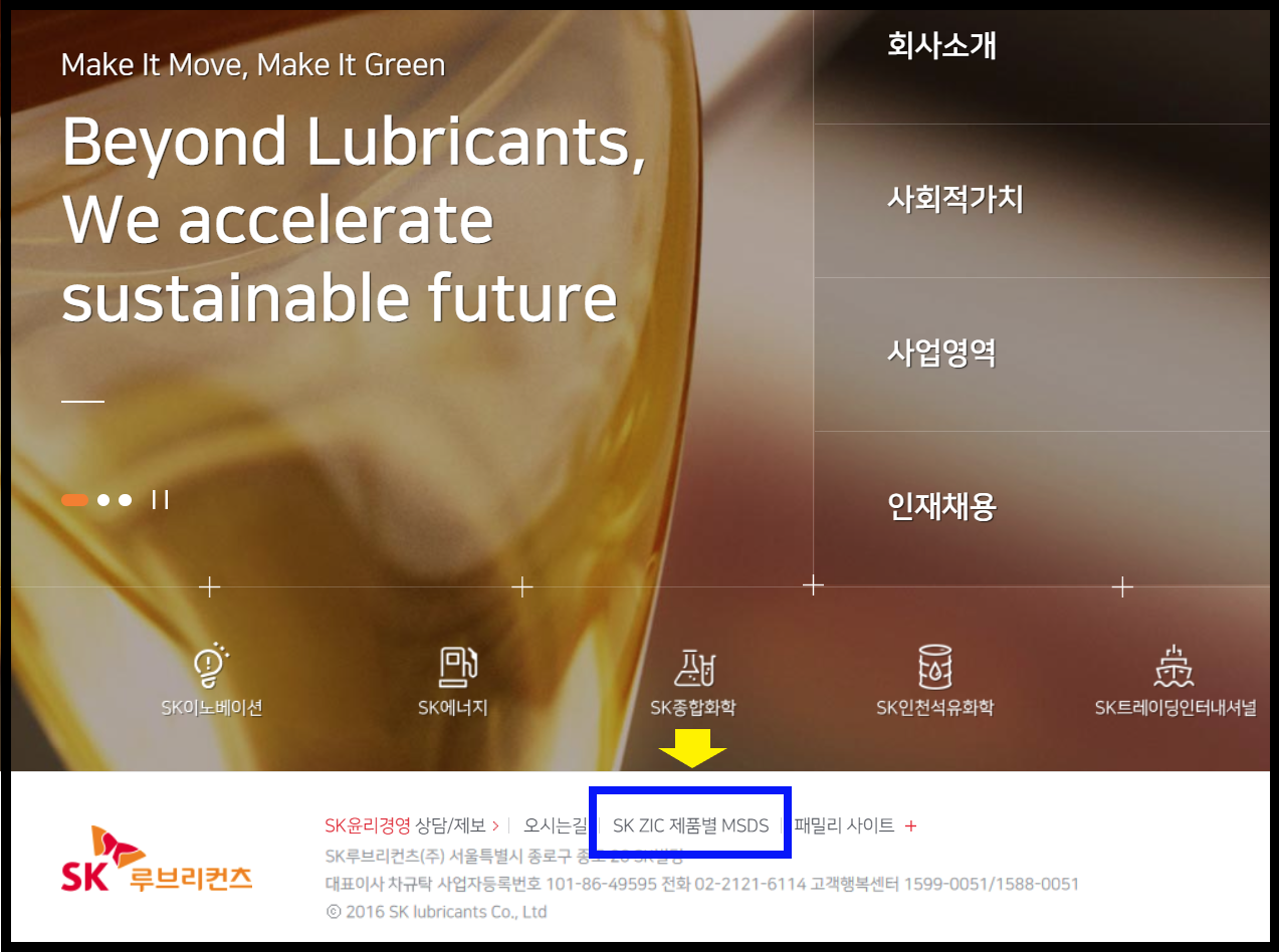- 검색창에 'SK루브리컨츠'를 검색하시면 회사 사이트에 접속할 수 있습니다.