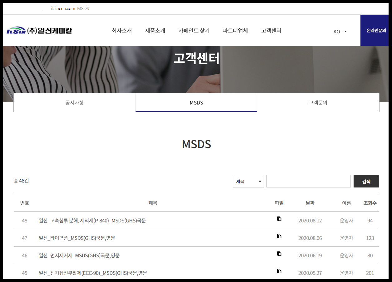 일신케미칼(구 일신씨앤에이) MSDS 검색 방법