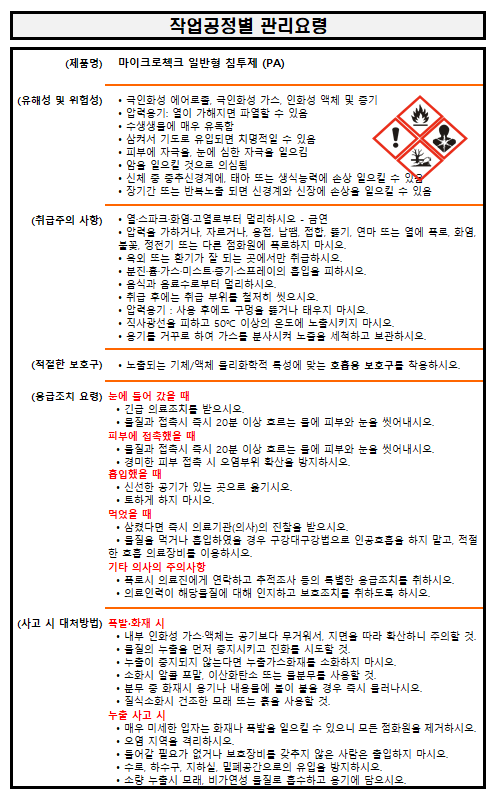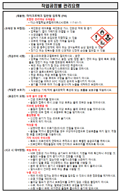 ▶ 첨부된 작업공정별 관리요령은 2018.3.7.에 개정된 물질안전보건자료(MSDS)를 참고하여 임의로 작성한 것입니다.