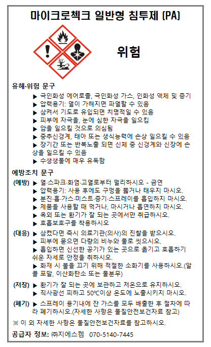 | 마이크로첵크 일반형 세척제(RA) ▶ 작업공정별 관리요령, 경고표지, 관리대상유해물질 게시, MSDS (0) | 2021.03.02 |
