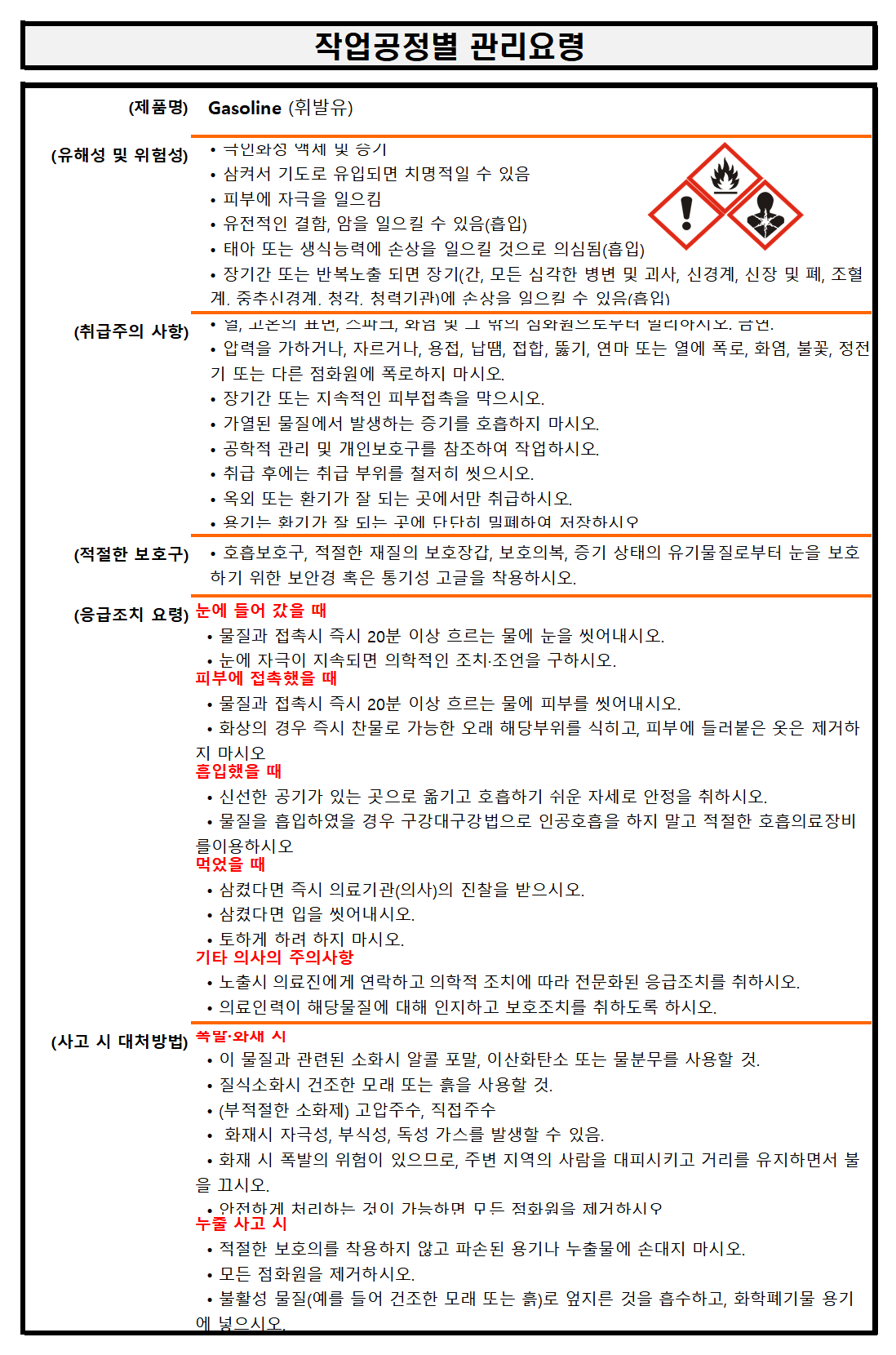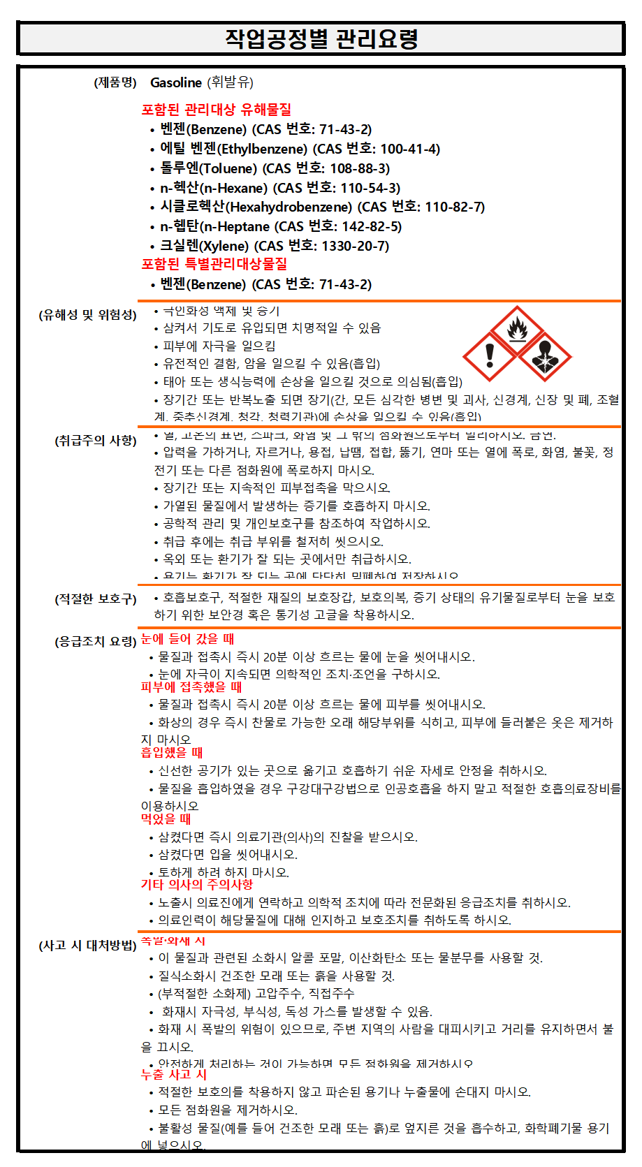 ▶ 첨부된 작업공정별 관리요령은 2021.9.30.에 개정된 물질안전보건자료(MSDS)를 참고하여 임의로 작성한 것입니다.