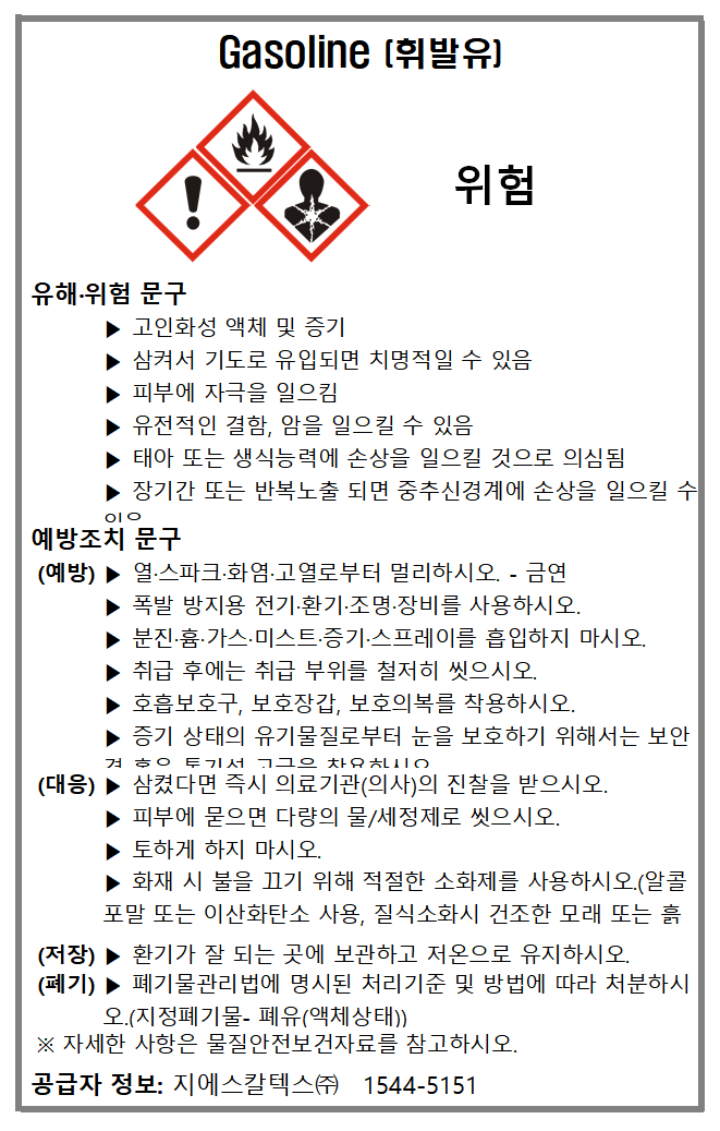 첨부된 경고표지는 2021.9.30.에 개정된 물질안전보건자료(MSDS)를 참고하여 임의로 작성한 것입니다.