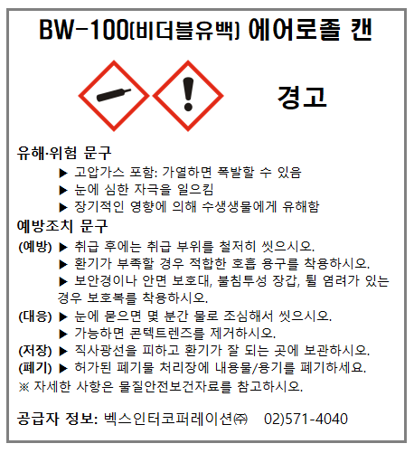 ▶ 제품명: BW-100(비더블유백) 에어로졸 캔