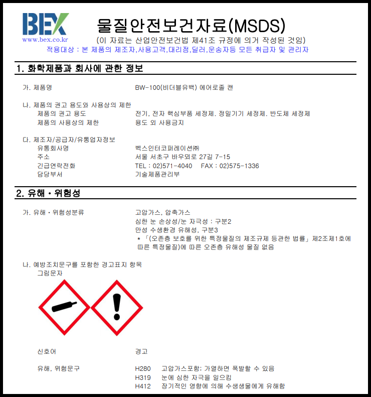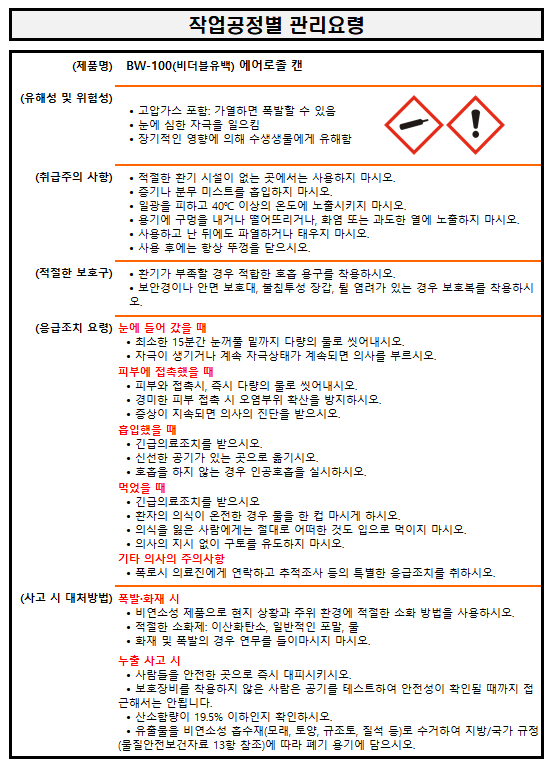 | WD-40 에어로졸 캔 ▶ 작업공정별 관리요령, 경고표지, MSDS (0) | 2021.03.05 |
