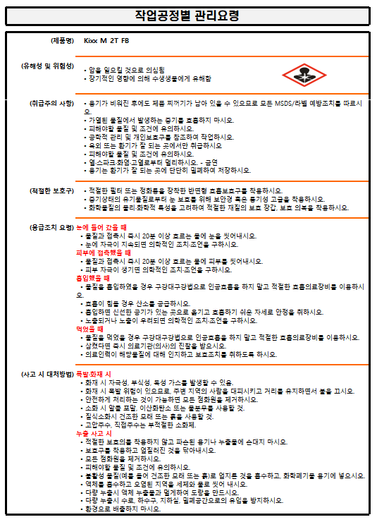 ▶ 첨부된 작업공정별 관리요령은 2020.6.1.에 개정된 MSDS를 참고하여 임의로 작성한 것입니다.