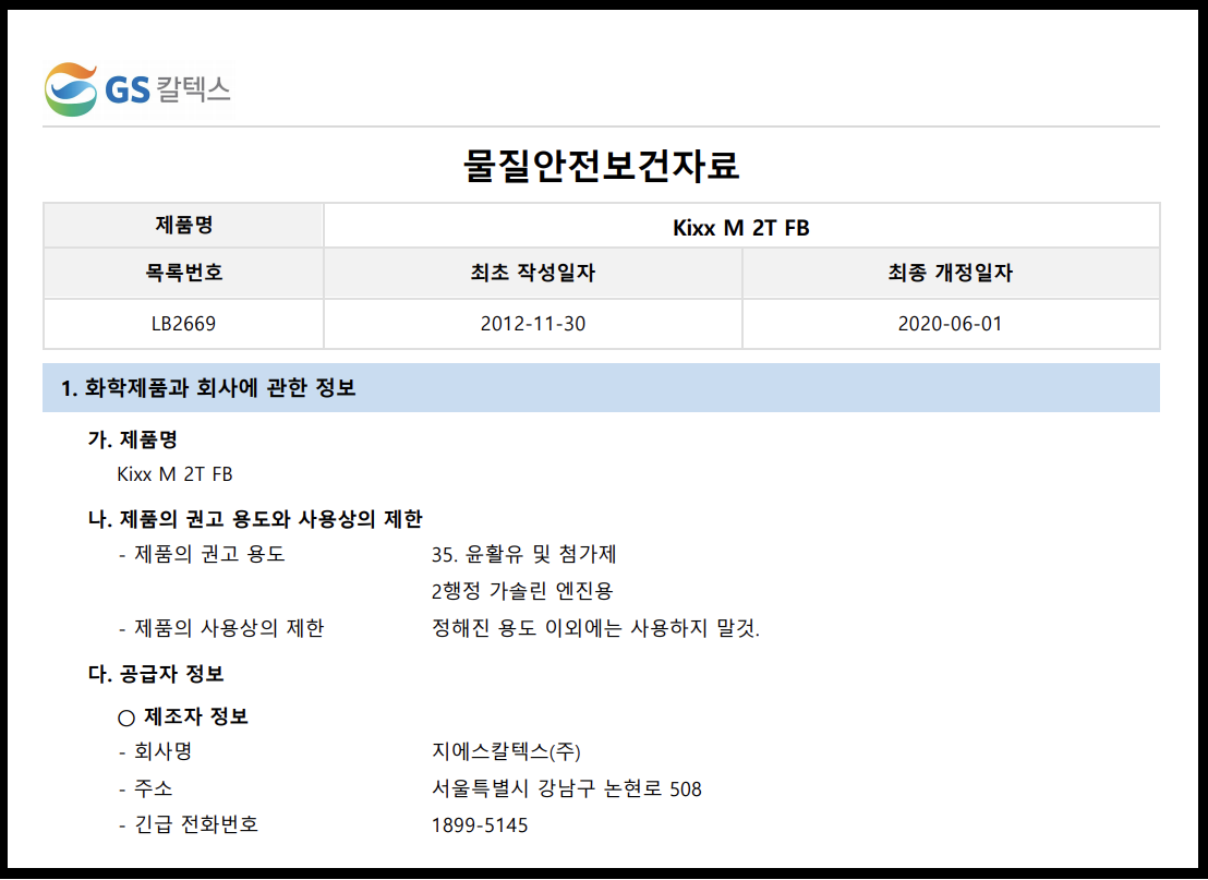 ▶ 제조자(공급자): 지에스칼텍스(주)
