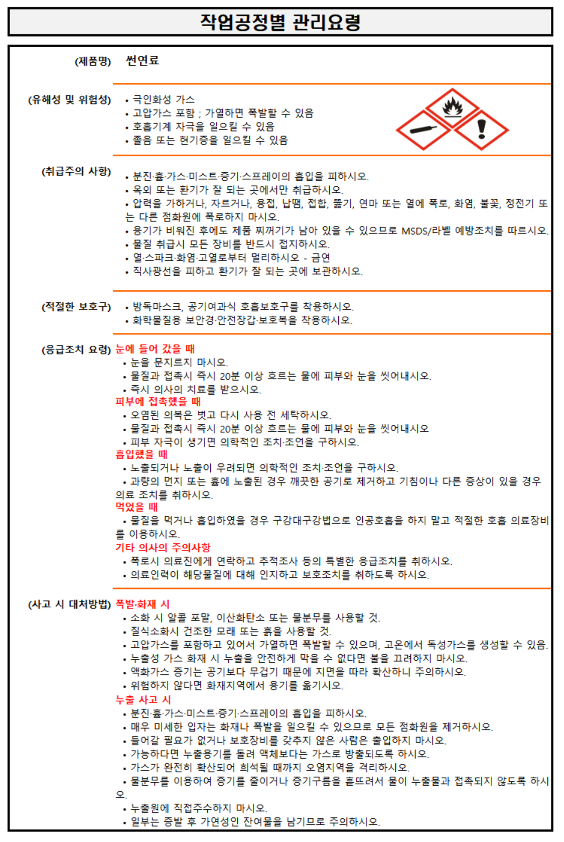 ▶ 첨부된 작업공정별 관리요령은 2020.10.8.에 개정된 MSDS를 참고하여 임의로 작성한 것입니다.